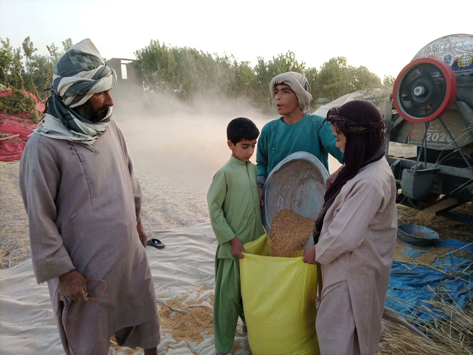 During the harvest season Abdul Basir's typical work day begins early in the morning. He wakes up to pray at 4 am, then heads to the wheat fields. He works until lunchtime, goes home to eat, prays, and returns to the farm after a two hour break.