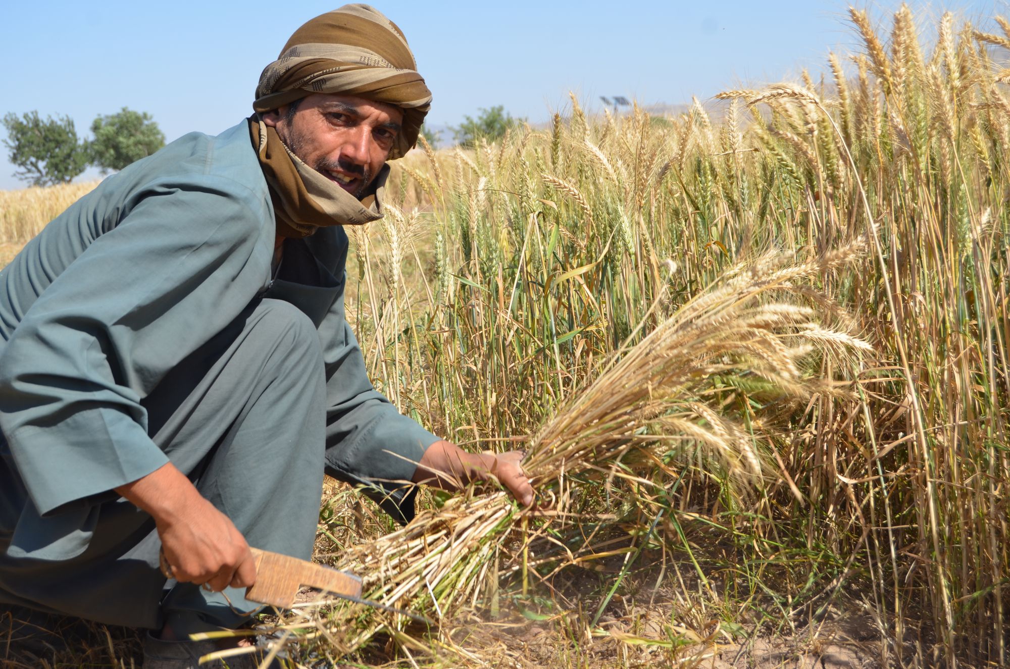“Cutting wheat is not for everyone, it requires courage. I cut about 18 kg of wheat seeds every day,” Basir says. For his labor, Basir is paid about 500 Afghanis ($5.63) per day.