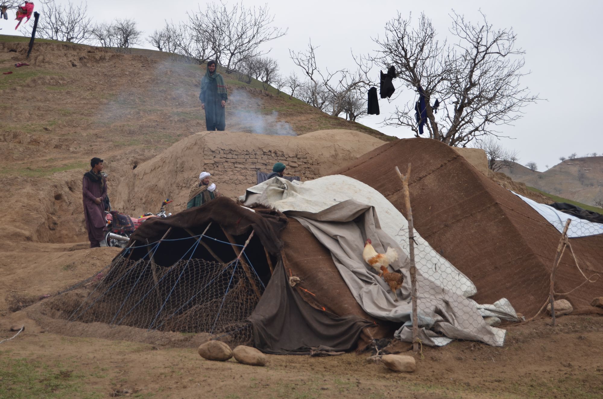 We entered one mud hut made by Mir Ahmad, who immediately put a couple of dung cakes on a fire (animal feces made into cakes, then dried and used for heating homes in Afghanistan) to heat up the room. We sat there for a while warming ourselves up before heading out to tend to the livestock.