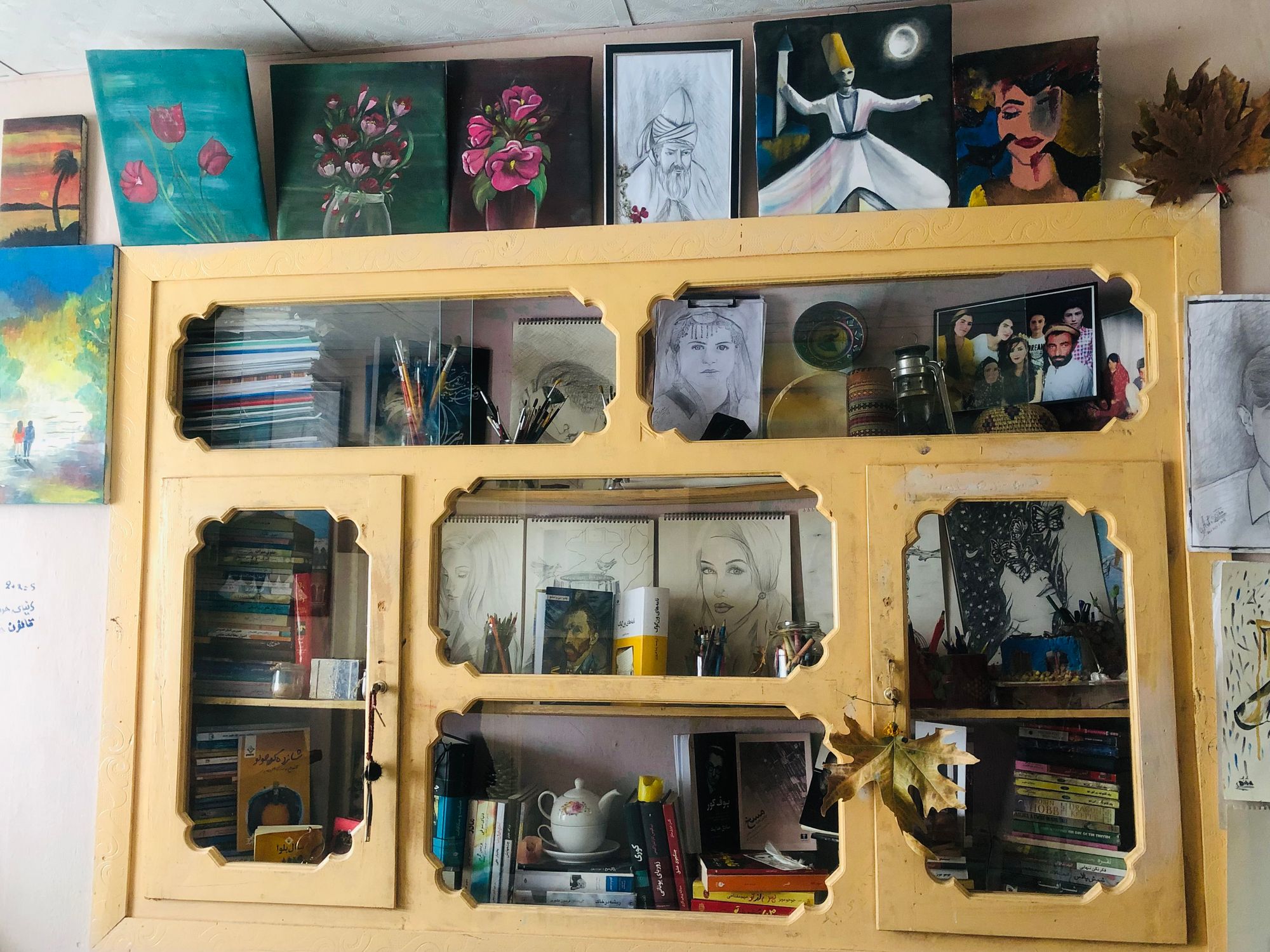 Diba’s interest in reading is evident from the cabinet occupying one side of the room, stacked with books, family pictures, art, and tools. She reads novels, loves the world, and encourages the youth to read.