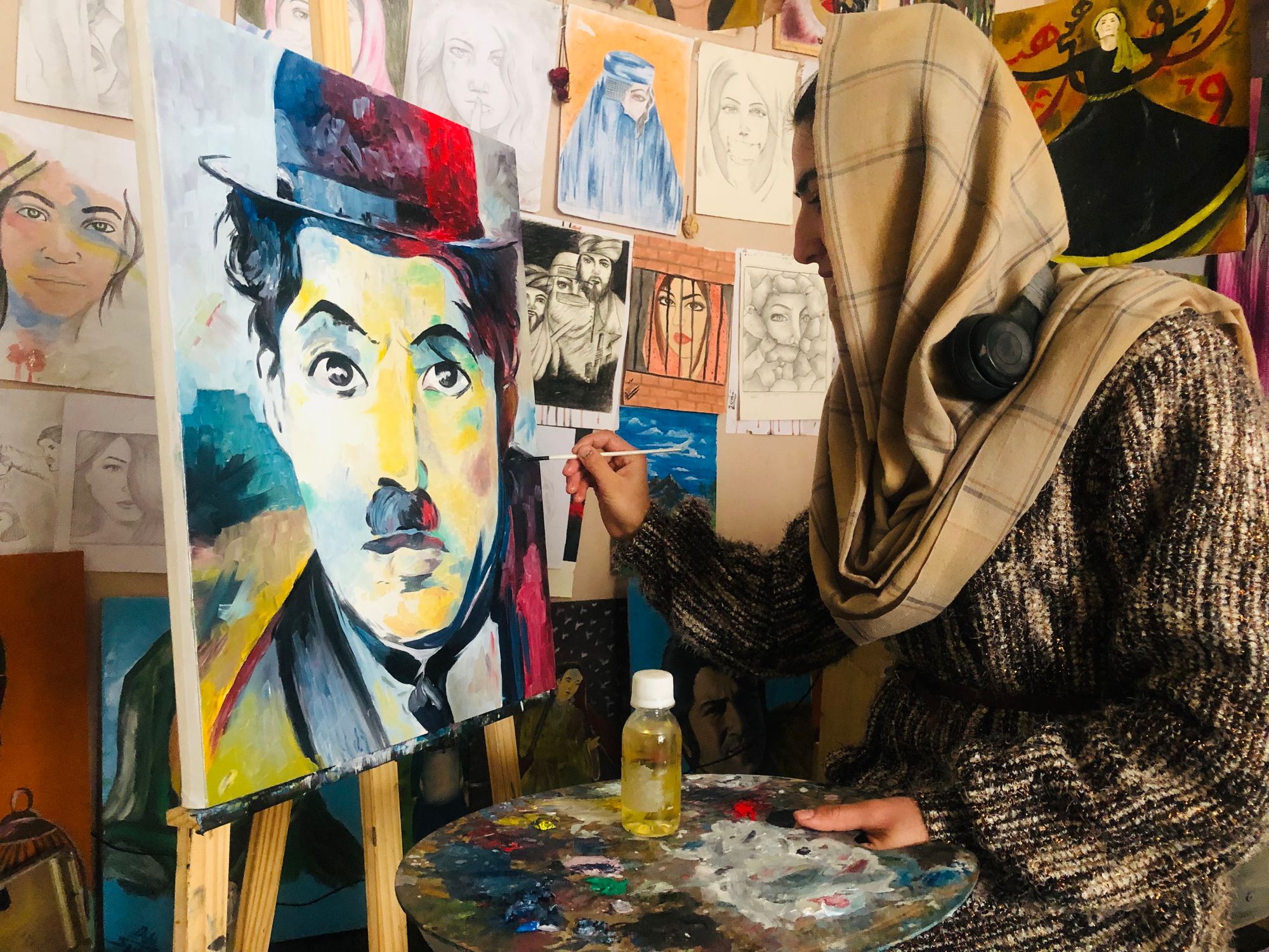 “I am going to teach painting due to high demand if the Islamic Emirate allows it,” she says. Although Diba likes theater and singing in addition to painting she is an introvert who wants to spend most of her time painting and being next to her tools.
