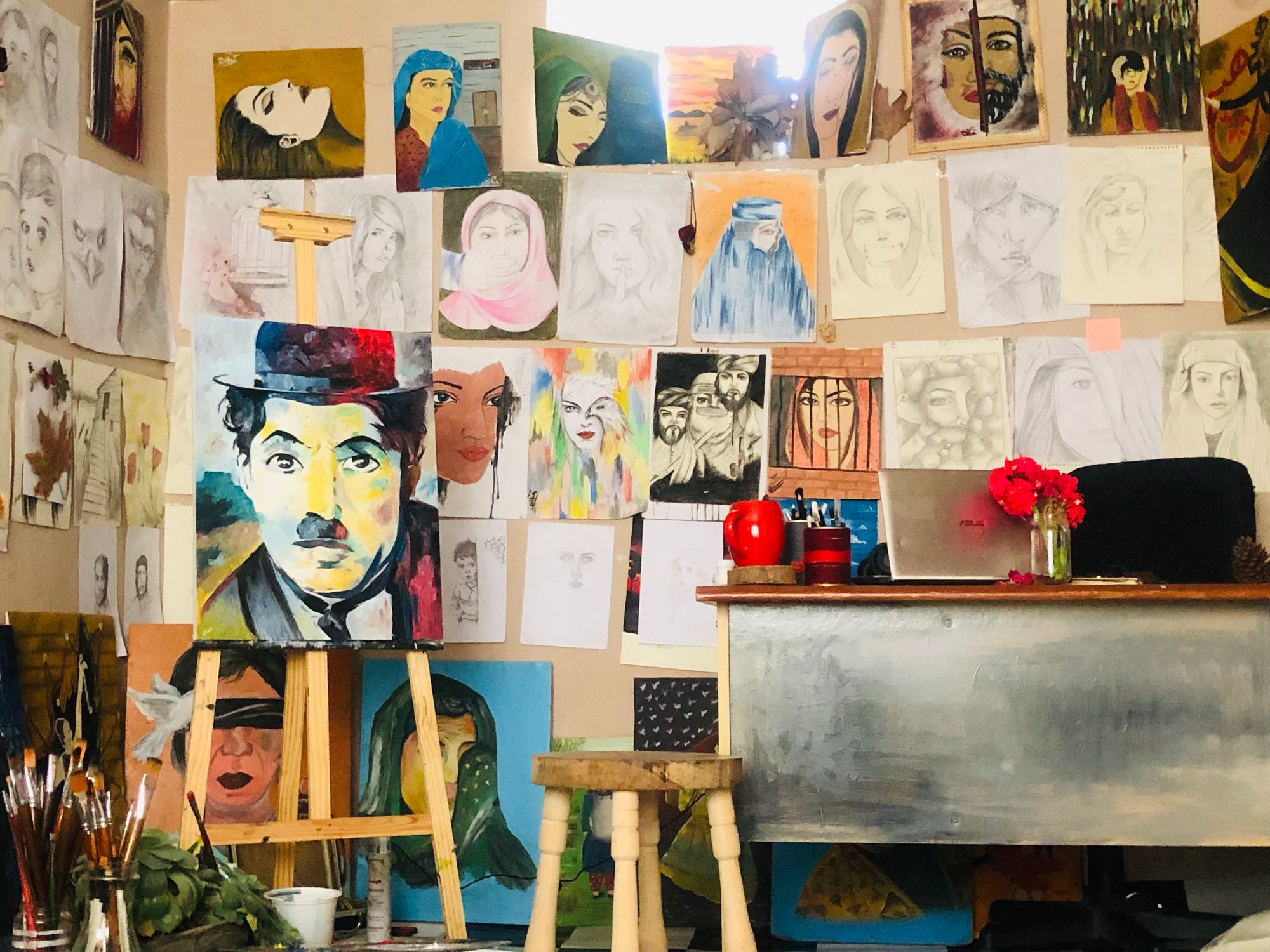“I’ve been working on this piece for a few days now and I am going to finish it today. I am painting it for my brother-in-law and because he is very fond of Charlie, I will give it to him for his birthday,” Diba says. Diba admires the work of Van Gogh, Pablo Picasso, and Leonardo da Vinci. Diba’s favorite artist is Van Gogh, who, according to her, paints based on his imagination, a style Diba follows and calls “Modernism”.