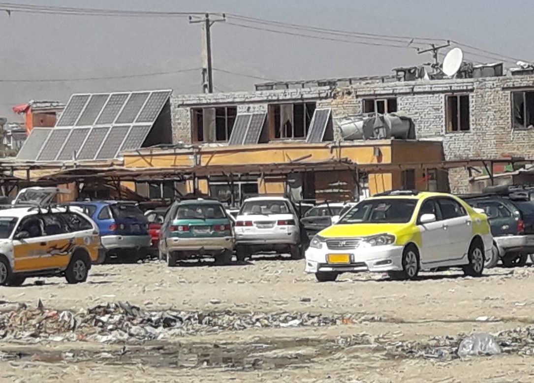 There was a canteen near the Mazar taxi station, I went inside to try to find someone who might have more information. I bought a bottle of water from the owner of the canteen, a 15 year-old boy. Wahid, the canteen owner, told me that he will never forget last night’s incident. He was busy selling goods when suddenly dozens of cans of energy drinks fell on his head. Everyone was fleeing the area and he left his canteen. It was only later he realized that the rocket had hit the hotel wall. A 2000 model Toyota Corolla was also damaged in the attack, but it wasn’t in the area when I arrived. The rocket attack did not leave any casualties in this area.