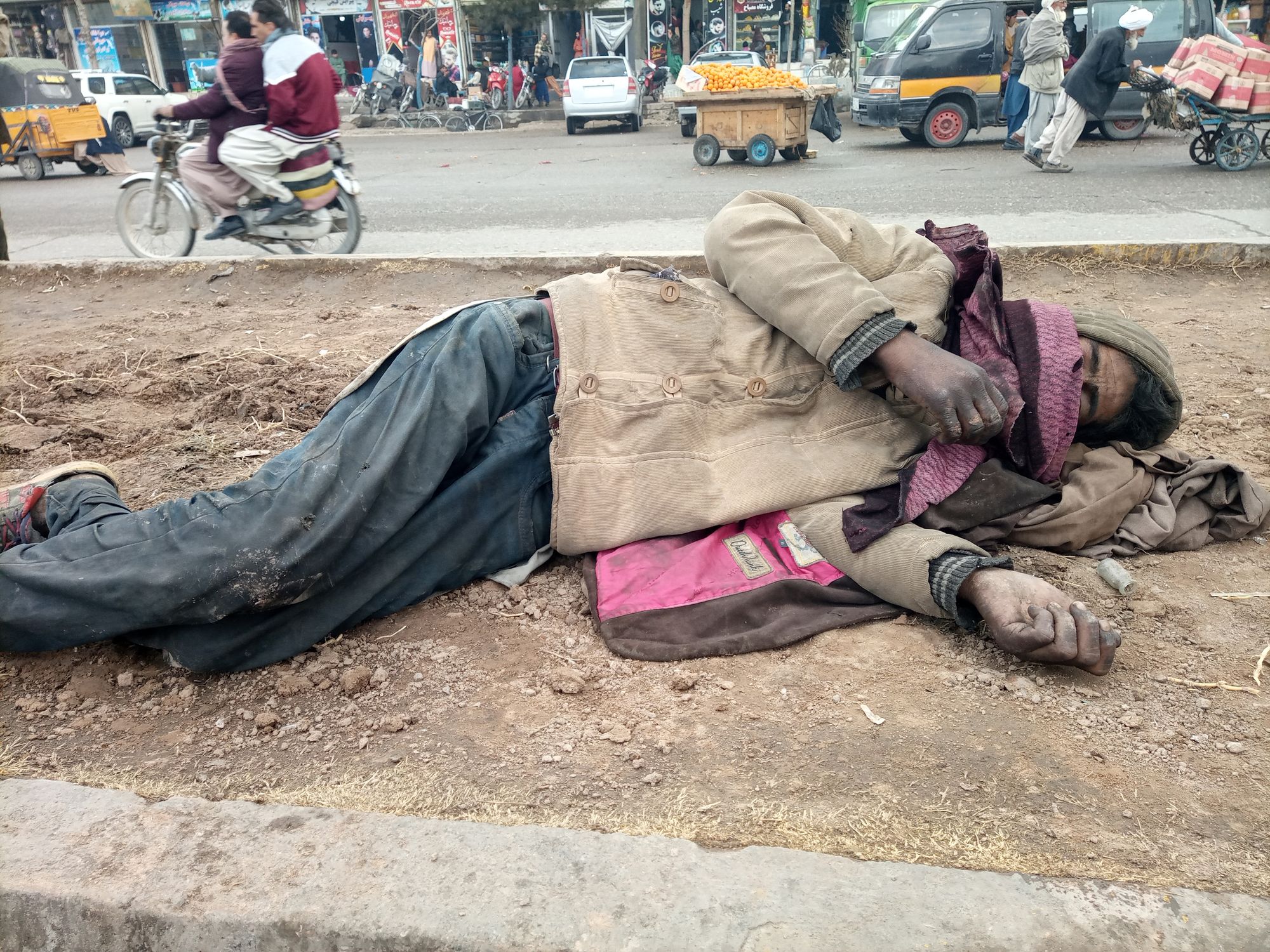 “The 50 or 100 Afghanis I make from selling scraps for buying drugs are sometimes taken away by the Taliban. They say we are buying poison anyways,” Mr. Noori says.