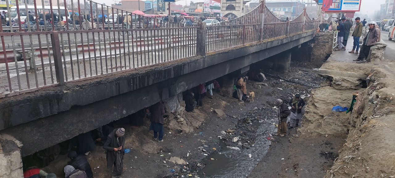 Pul-e Sukhta is one of the most famous gathering spots for drug users in Afghanistan’s capital Kabul. For many years individuals who use drugs have congregated in the hidden spaces beneath bridges over the Kabul River. They are one of the many places Afghans can find a place to get high with their fellow outcasts. The bridges cross a portion of the Kabul river that is dry most of the year, other than the sewage waste that flows through it.