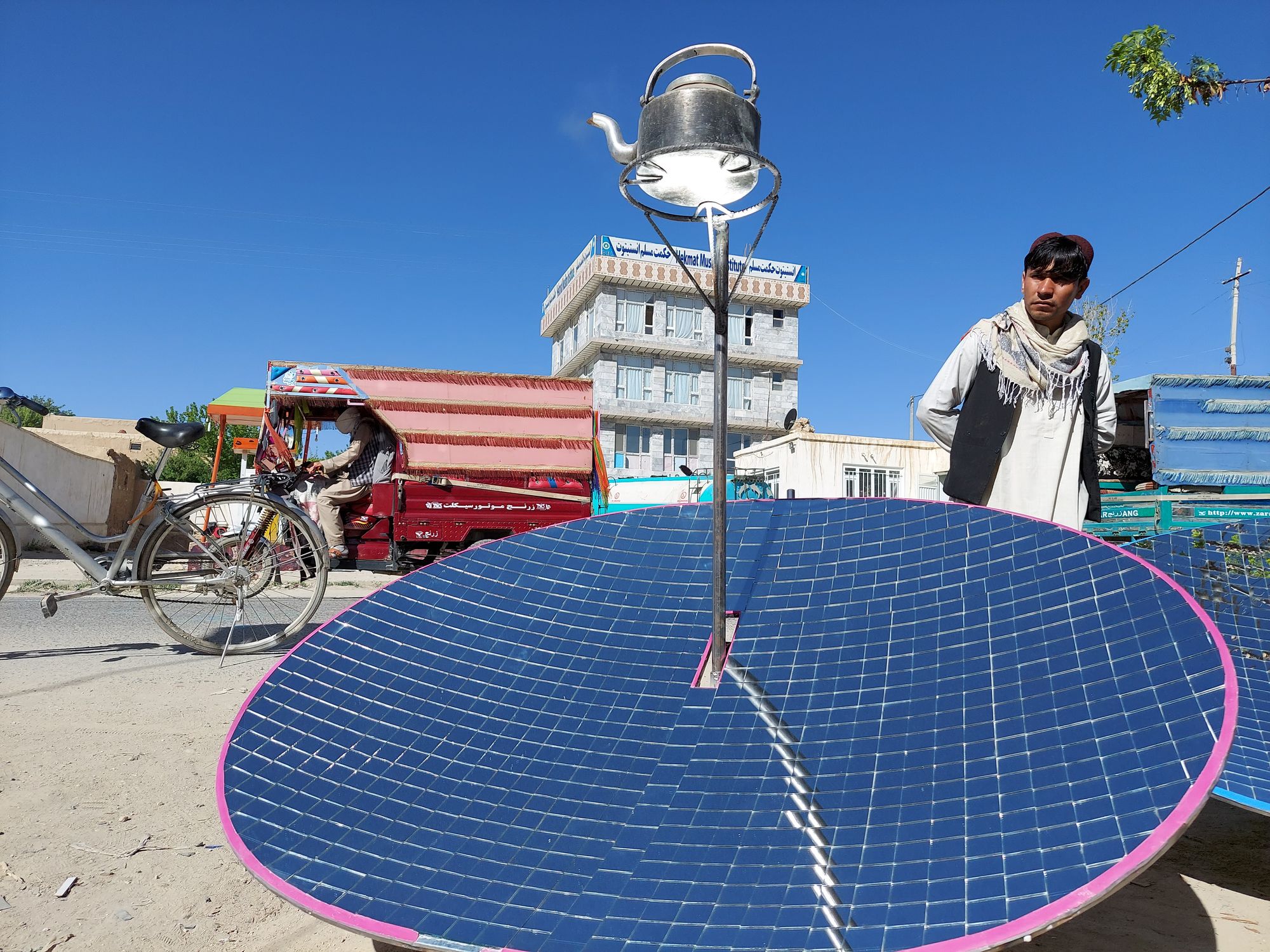 The absence of a reliable power grid has made many Afghans, including ironsmith Najibullah Nazari improvise. Mr. Nazari makes solar cookers that can boil 2 liters of water in less than 20 minutes.