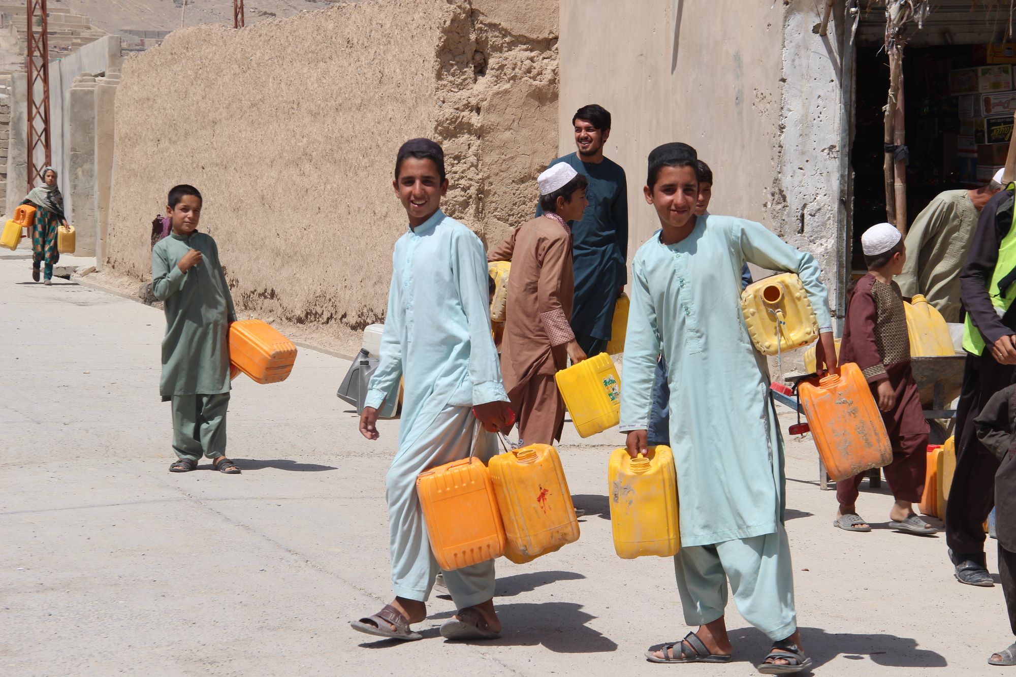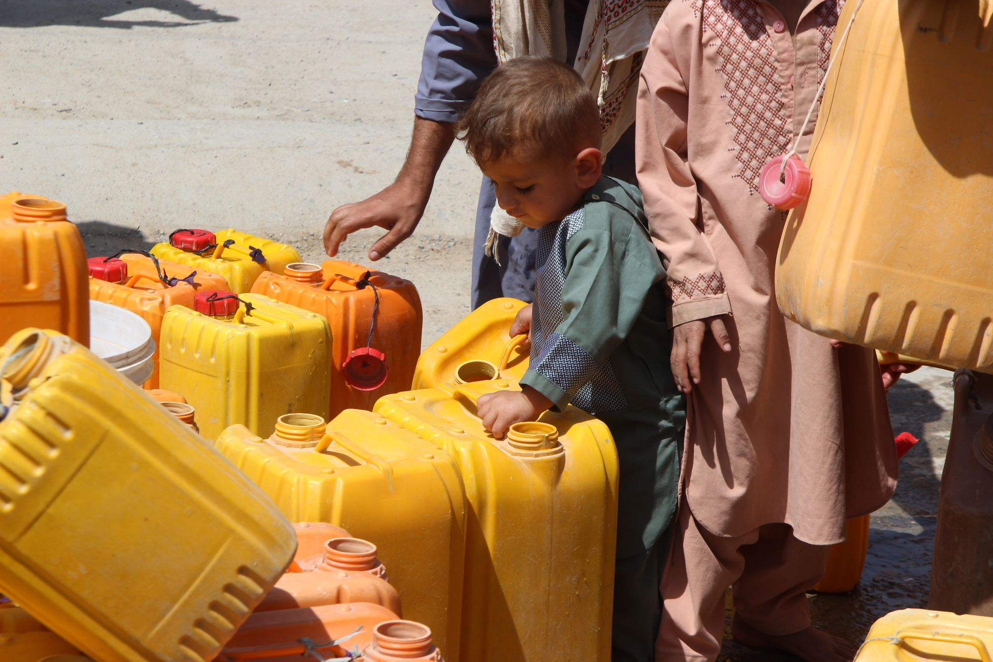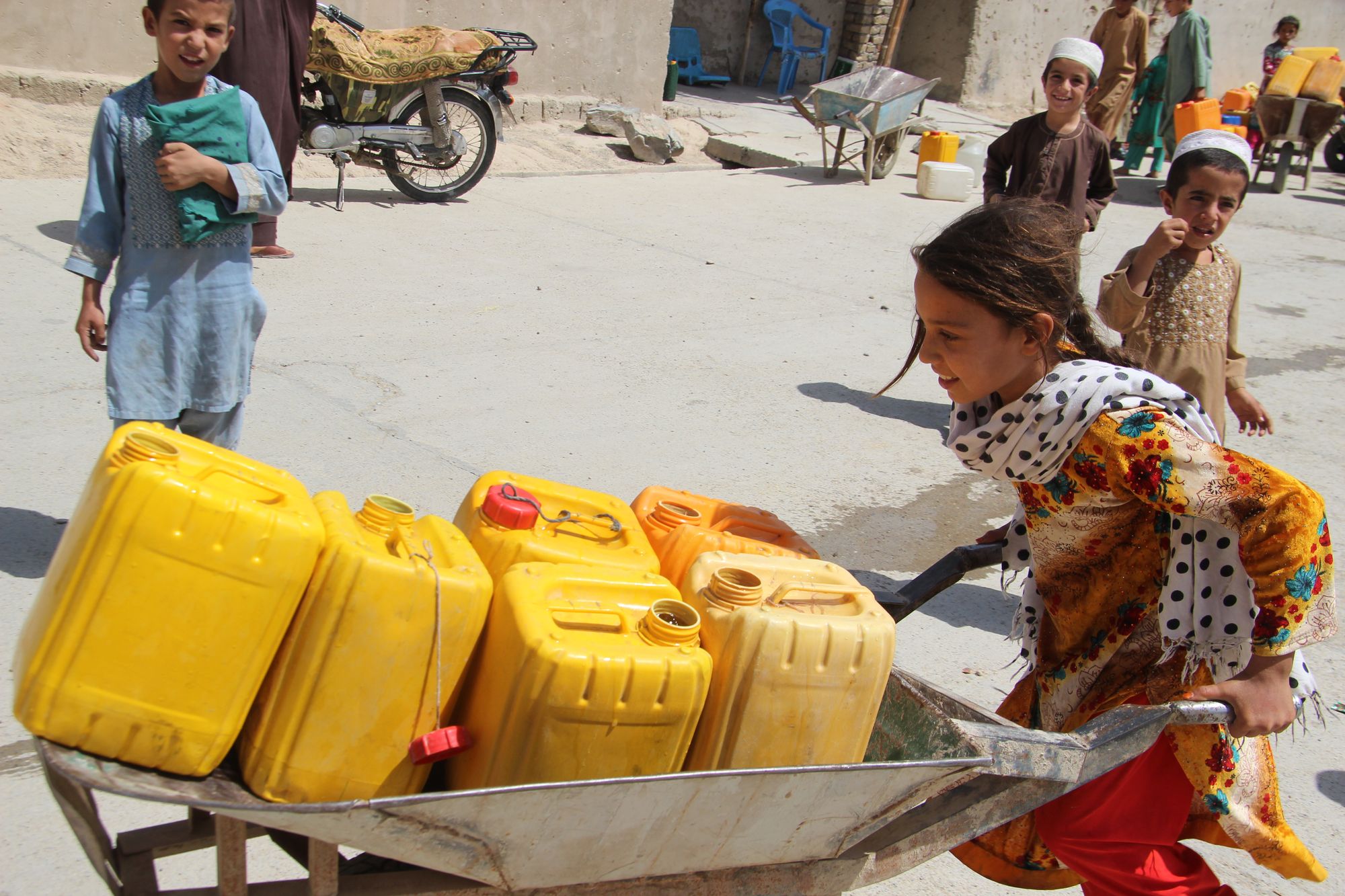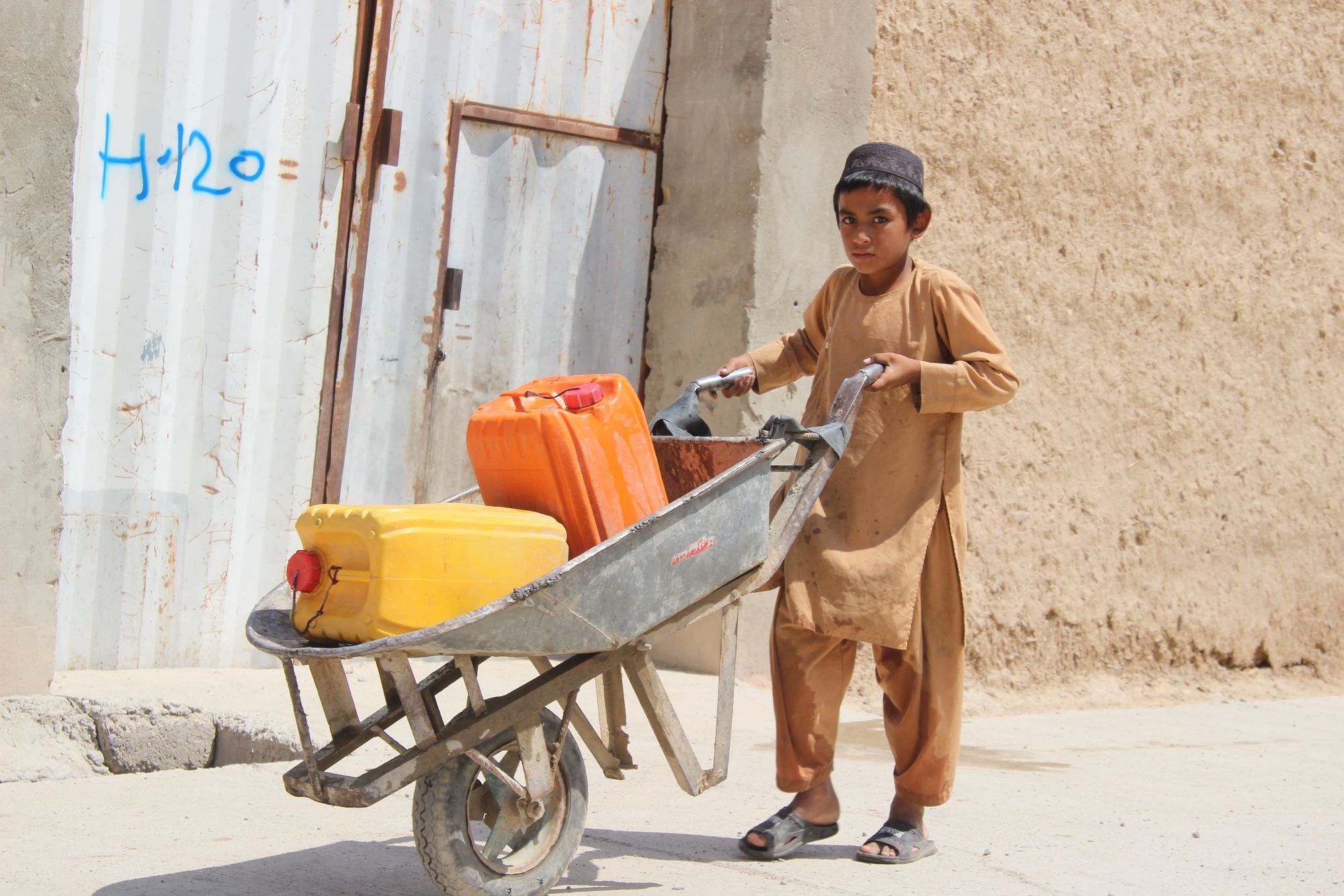 Water scarcity has been a problem for many years across Afghanistan. In Kandahar children as young as four carry water delivered by tankers to their households on a daily basis.